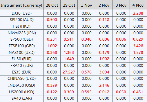 Please be advised that the dividends of the following index CFDs will be adjusted by upcoming ex-dividend dates. The comment for trading index CFDs will be in the following format “Div&<Product Name>&<Net Volume>” which show in the balance after the close of the day before the dividend payment date.