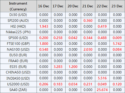 Please be advised that the dividends of the following index CFDs will be adjusted by upcoming ex-dividend dates. The comment for trading index CFDs will be in the following format “Div&<Product Name>&<Net Volume>” which show in the balance after the close of the day before the dividend payment date.