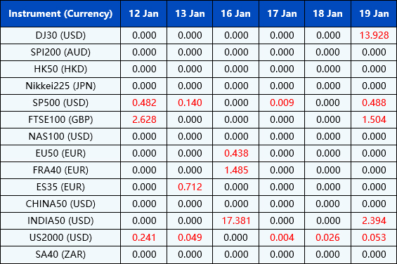 Please be advised that the dividends of the following index CFDs will be adjusted by upcoming ex-dividend dates. The comment for trading index CFDs will be in the following format “Div&<Product Name>&<Net Volume>” which show in the balance after the close of the day before the dividend payment date.