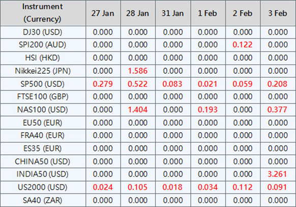 Please be advised that the dividends of the following index CFDs will be adjusted by upcoming ex-dividend dates. The comment for trading index CFDs will be in the following format “Div&<Product Name>&<Net Volume>” which show in the balance after the close of the day before the dividend payment date.