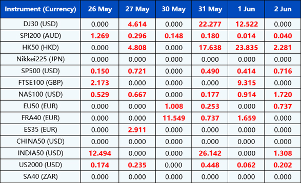 Please be advised that the dividends of the following index CFDs will be adjusted by upcoming ex-dividend dates. The comment for trading index CFDs will be in the following format “Div& <Product Name>&<Net Volume>”which show in the balance after the close of the day before the dividend payment date.