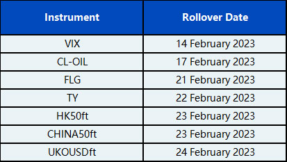 Please be advised that the following CFD instruments will be automatically rolled over as per the dates in the table below. As there can be a pricing difference between old and new futures contracts, we recommend clients to monitor their positions closely and manage positions accordingly.