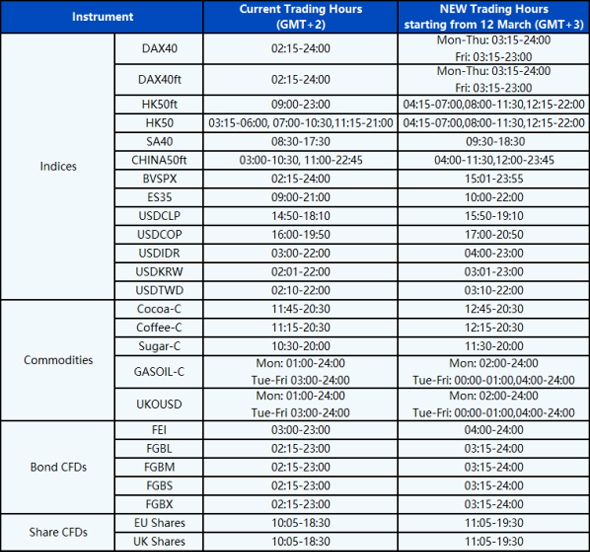 Except from the server time changes in MT4/MT5 system, kindly refer to the table below for the schedule of all the instruments that are subject to changes: