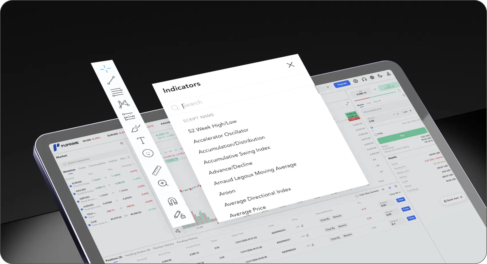 Penggambaran lanjutan dengan lebih dari 100 indikator dan alat gambar profesional.